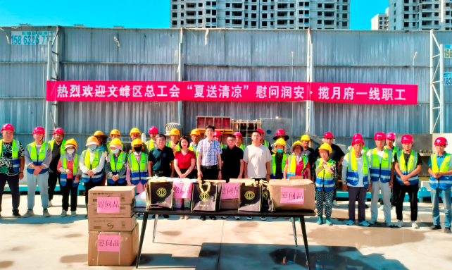 為做好防暑降溫工作,切實(shí)保障一線職工的健康安全。6月15日上午,安陽市文峰區(qū)總工會常務(wù)副主席連繼業(yè)、副主席閆妍一行深入集團(tuán)公司潤安攬?jiān)赂?xiàng)目部開展“夏送清涼”走訪慰問。集團(tuán)公司副董事長李志超、工會主席王福民、攬?jiān)赂?xiàng)目總經(jīng)理張帆等對工會領(lǐng)導(dǎo)的到來表示熱烈歡迎。